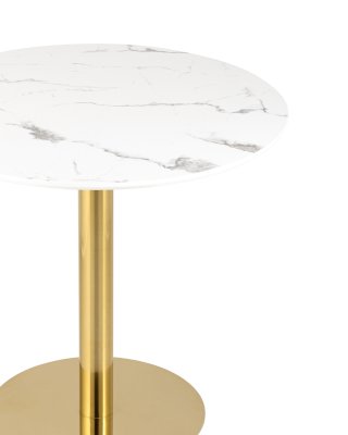 Стильная модель обеденного стола с плавными очертаниями украсит кухню, столовую, дачную террасу или современное кафе. Стильная ножка изготовлена из металла в золотом цвете, диаметр столешницы 80 см.