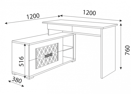 • Два компактных выкатных ящика по столешницей. Два глубоких ящика в тумбе и ниша со съемной полкой. При необходимости, полку можно убрать и в нише разместить системный блок компьютера.