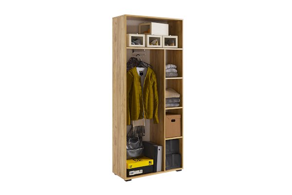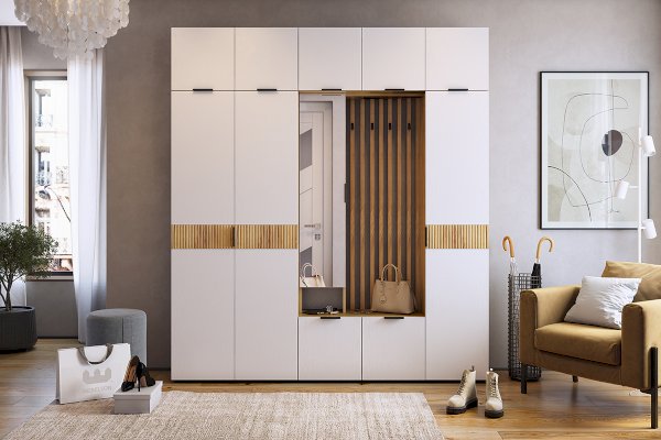 Шкаф 2-х дверный "Бери"-  это отличный вариант для маленькой прихожей. Выдвижная штанга для одежды, 5 полок, все это позволит разместить все необходимые вещи в прихожей.