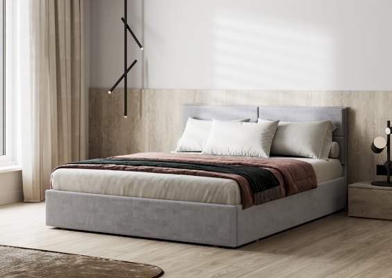 Кровать Мелоди с обивкой из велюра натуральных оттенков станет стильным элементом современного интерьера.