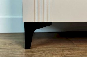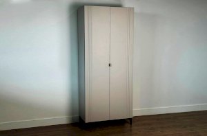 Корпус шкафа изготовлен из ЛДСП, что гарантирует прочность и долговечность. Фасад, покрытый МДФ в плёнке ПВХ, не только выглядит эстетично, но и защищает шкаф от повреждений. Особое внимание заслуживает фрезеровка фасадов, которая придаёт шкафу изысканный вид.