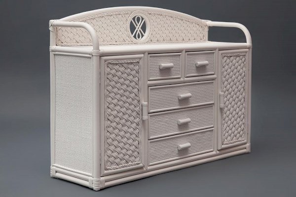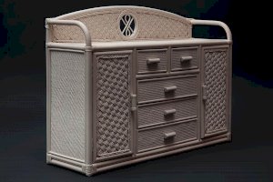 Великолепный высокий комод Secret De Maison из французской коллекции ANDREA, выполненный в колониальном стиле, прекрасно впишется в интерьер квартиры или загородного дома. При всей простоте исполнения, комод является довольно вместительным и функциональным предметом обстановки. Пять удобных выдвижных ящиков разного размера и два закрытых отделения с полками позволят хранить огромное количество предметов. Декоративная панель и боковые бортики сверху надежно защитят предметы от падения. Комод выполнен вручную из натурального ротанга с использованием нескольких видов традиционного индонезийского плетения. Натуральный ротанг, покрытый прозрачным матовым лаком, устойчивым к УФ-излучению, прочен, долговечен, способен выдерживать большую нагрузку, и будет радовать вас своим первоначальным видом долгие годы. Модель идеально сочетается с мебелью из коллекции ANDREA, поставляется в собранном виде.