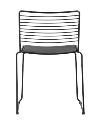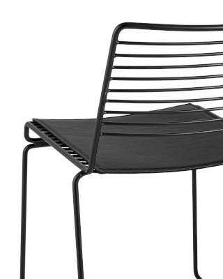 Современная модель стула Danny подходит как для интерьера обеденной зоны дома, так и для кафе или ресторана. Спинка и сидение выполнены из металлических прутьев черного цвета. Подушка изготовлена из черной экокожи в тон каркасу. Ножки выполнены из металла в тон сидения и имеют подставки, которые предотвращают скольжение по поверхности пола. Обратите внимание, данный стул можно стопировать, что помогает экономить место при хранении.